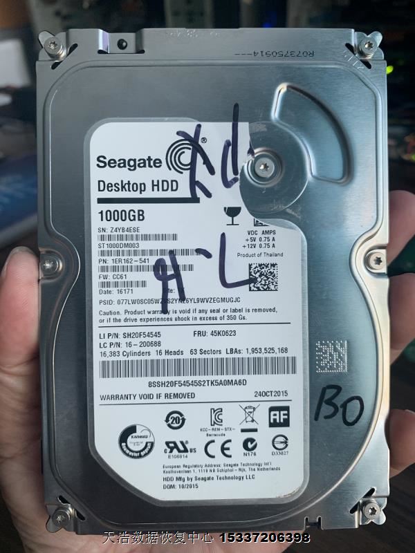 硬盘型号:ST1000DM003-1ER162 SN:Z4YB4ESE FW:CC61 电路板号:100749730