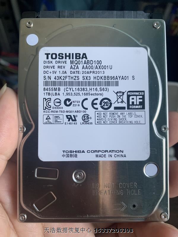 硬盘型号:TOSHIBA MQ01ABD100 SN:43K2FTHZS FW:AX001U9Z 电路板号:G3138A