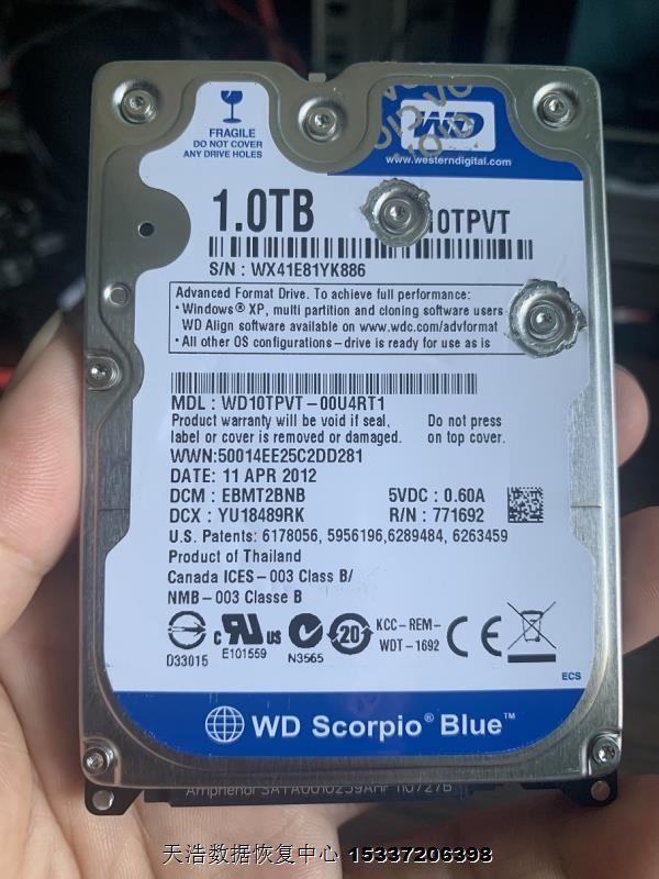硬盘型号:WD10TPVT-00U4RT1 SN:WX41E81YK886 FW:8000F 电路板号:771692-005
