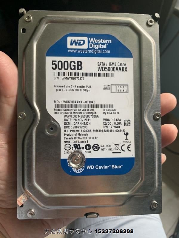 硬盘型号:WD5000AAKX-001CA0 SN:WMAYU9773874 FW:3002P 电路板号:771640-003