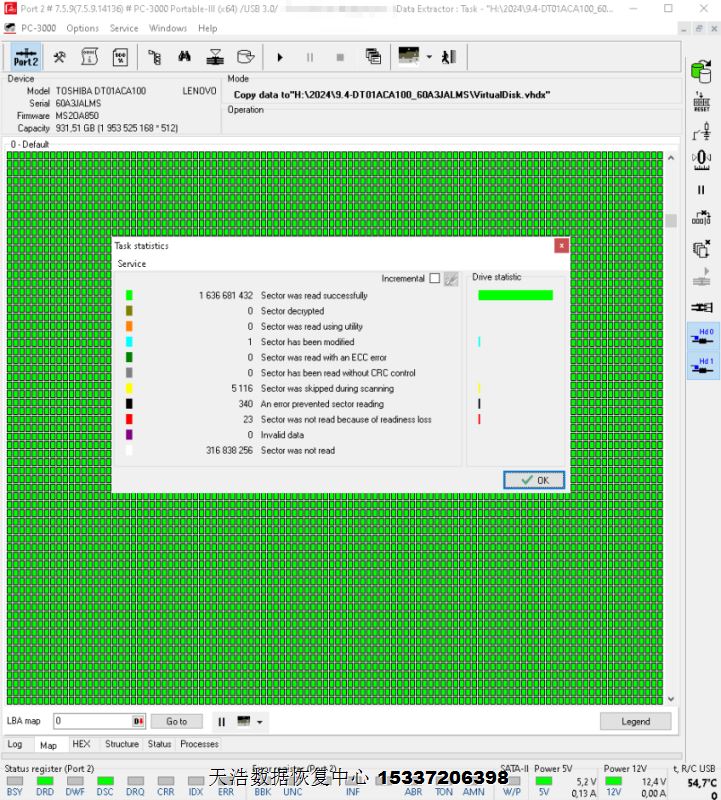 TOSHIBA DT01ACA100开盘恢复成功案例