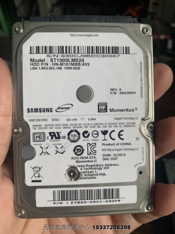 故障现象:希捷原装1T移动硬盘,使用过程中,不小心碰到掉到地上,再通电敲盘了!