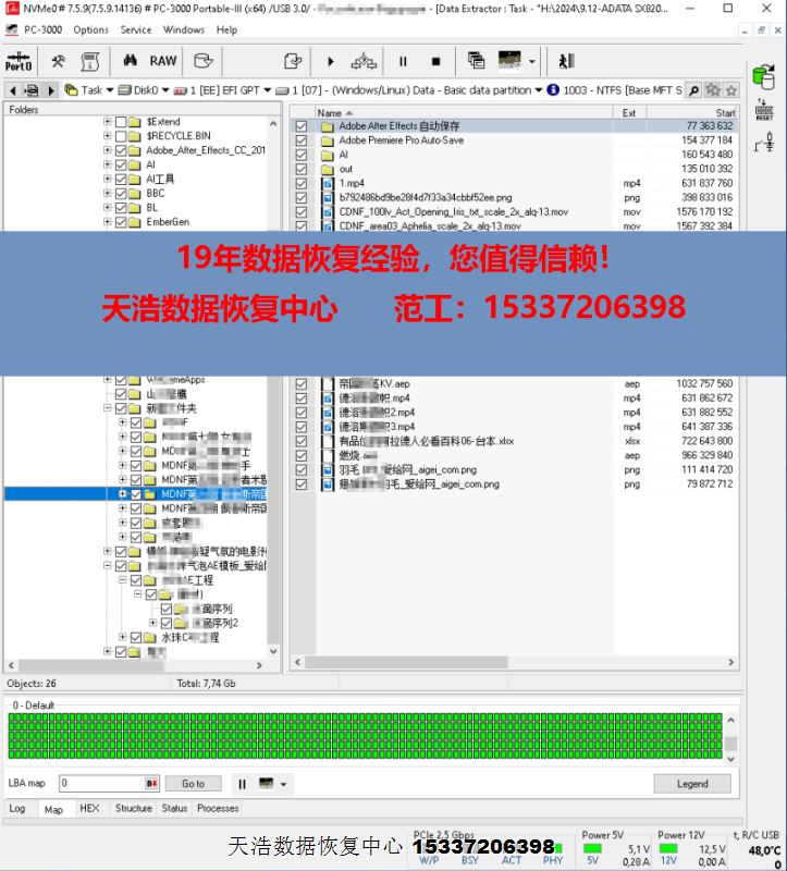 解决方案:收到硬盘后,我们接到专业的SSD恢复工具ACE PC-3000 Portable3上,短接通电,处理固件问题,虚拟重建编译器,用PC3000 DE虚拟镜像,最后客户硬盘内的重要数据基本完整恢复!