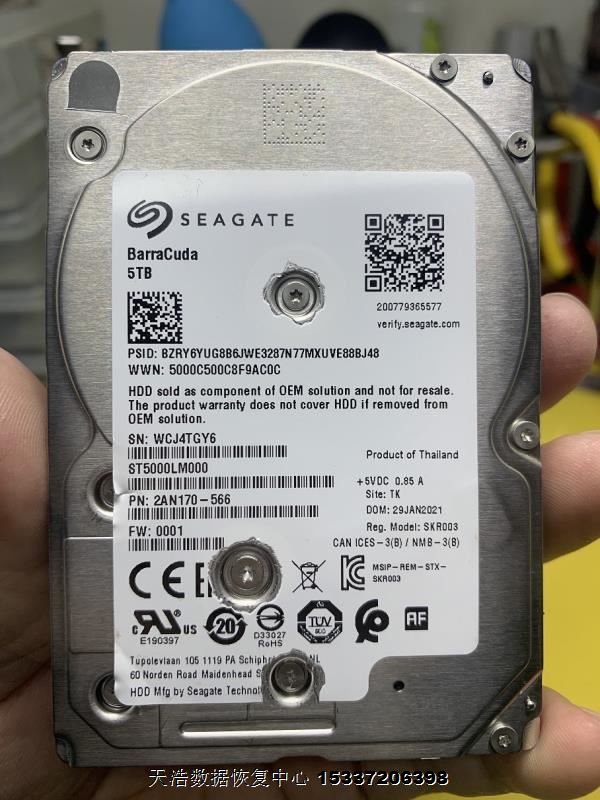 硬盘型号:ST5000LM000-2AN170 SN:WCJ4TGY6 FW:0001 电路板号:100794976