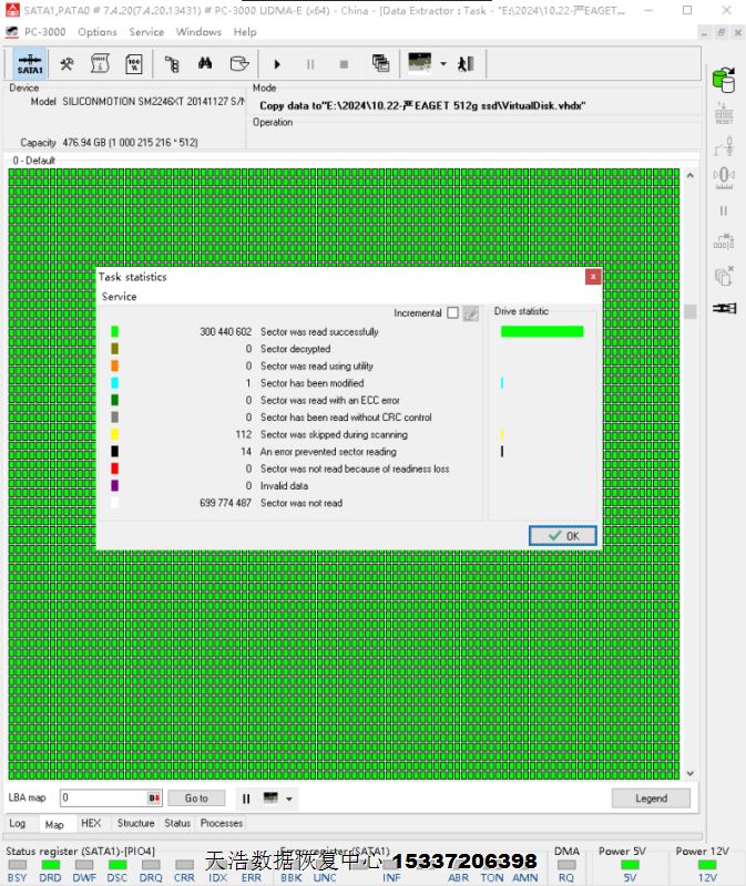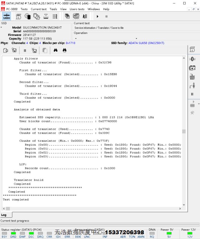 解决方案:收到硬盘后,我们接到专业的SSD恢复工具ACE PC3000 SSD上,短接通电,虚拟重建编译器,用PC3000 DE虚拟镜像,成功恢复出客户硬盘内几乎全部重要资料!