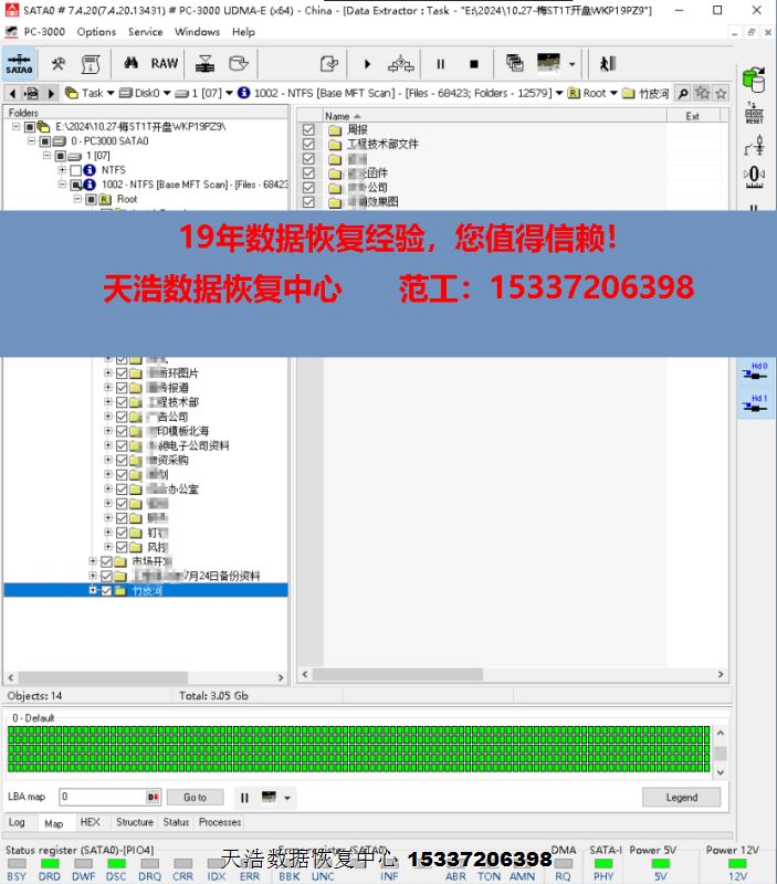 解决方案:收到硬盘后,在无尘环境更换兼容的磁头,再接到数据恢复工具ACE PC3000 UDMA EXPRESS上,通电硬盘正常认盘,做好固件备份和数据恢复前的关键操作后,DE分头镜像,最后客户硬盘内重要数据基本完美恢复!