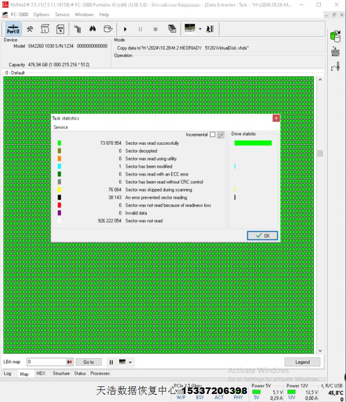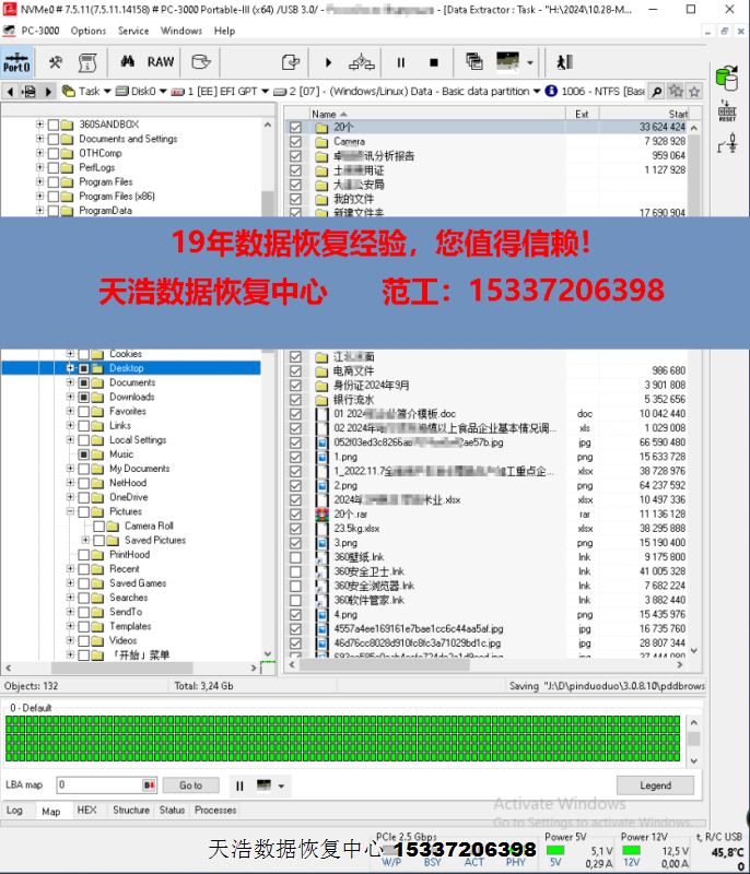 解决方案:收到硬盘后,我们接到专业的SSD恢复工具ACE PC-3000 Portable3上,短接通电,重建编译器,用PC3000 DE虚拟镜像,最后客户硬盘内桌面数据大部分成功恢复!