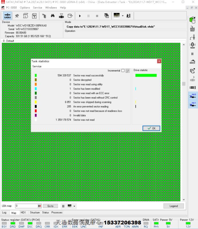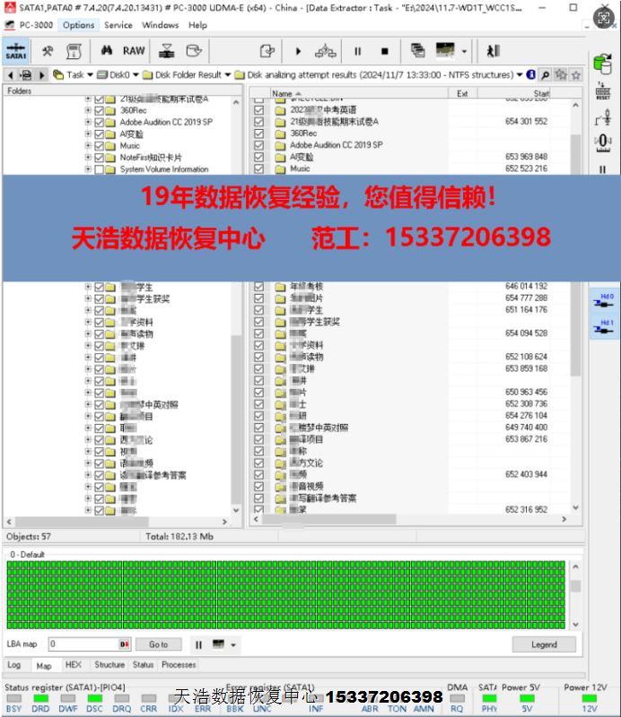 解决方案:收到硬盘后,接到专业数据恢复工具ACE PC3000 UDMA EXPRESS上,通电不认盘,检测发现固件问题,备份检测修复固件后,断电通电硬盘正常认盘,DE分头镜像,成功恢复硬盘内客户单位的几乎全部重要数据!