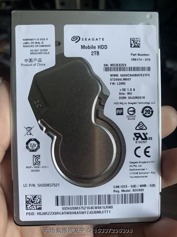 硬盘型号:ST2000LM007-1R8174 SN:WDZEXZES FW:LDM2 电路板号:100809471