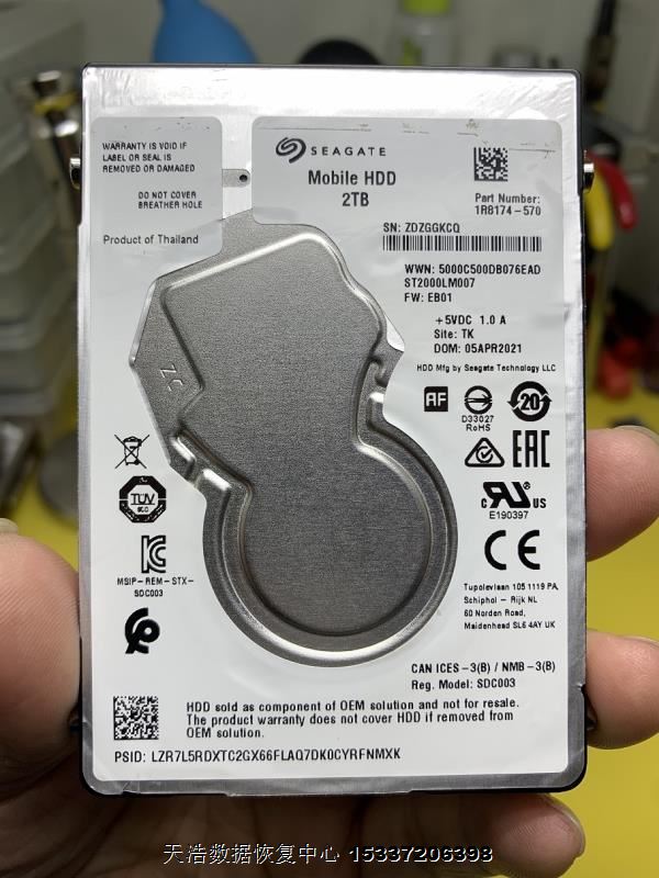 故障现象:希捷2T原装移动硬盘,通电不认盘敲盘!
