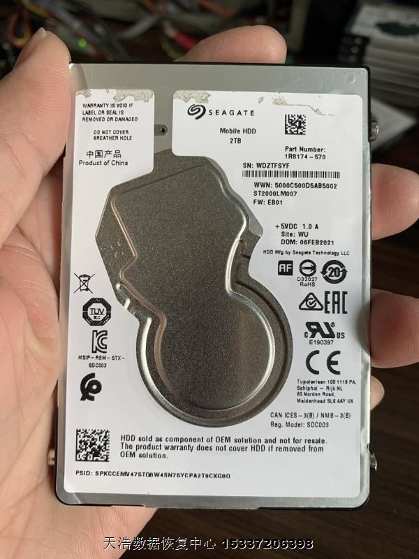 故障现象:希捷2T笔记本硬盘,通电敲盘!