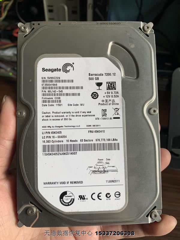 硬盘型号:ST3500418AS SN:5VMXZZEN FW:CC6B 电路板号:100535704