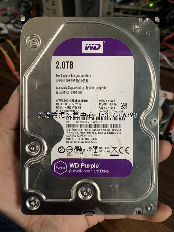 硬盘型号:WD20PURX-64PFUY0 SN:WCC4M4CJZR25 FW:15000B 电路板号:771945-002