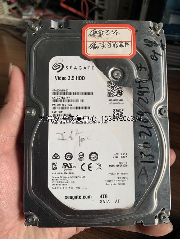 硬盘型号:ST4000VM000-2AF166 SN:ZGY6A1WH FW:SC11 电路板号:100788341