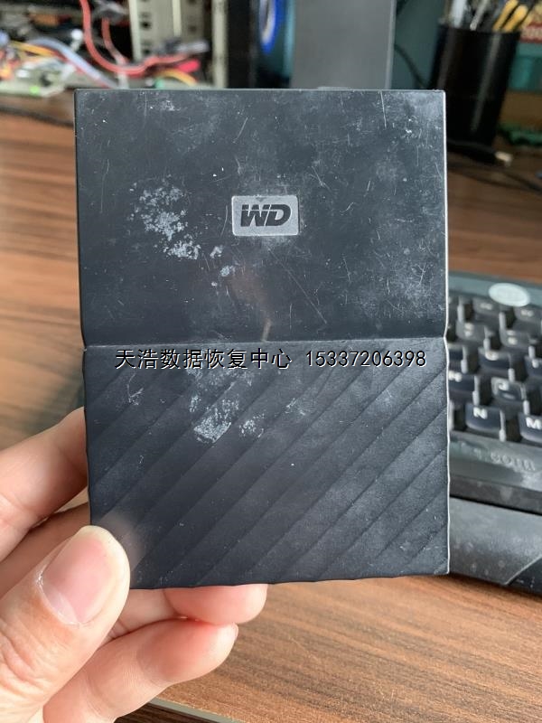 故障现象:My Passport 1T原装移动硬盘,通电敲盘,磁头损坏!