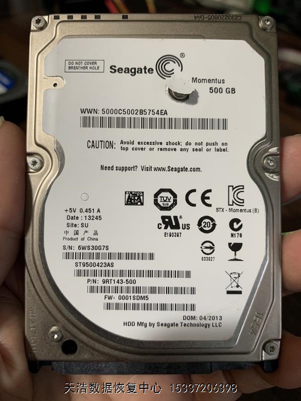 硬盘型号:ST9500423AS SN:S2V0AK31 FW:0001SDM5 电路板号:100675229