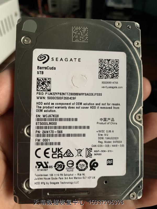 硬盘型号:ST5000LM000-2AN170 SN:WCJ97KQ8 FW:0001 电路板号:100794976