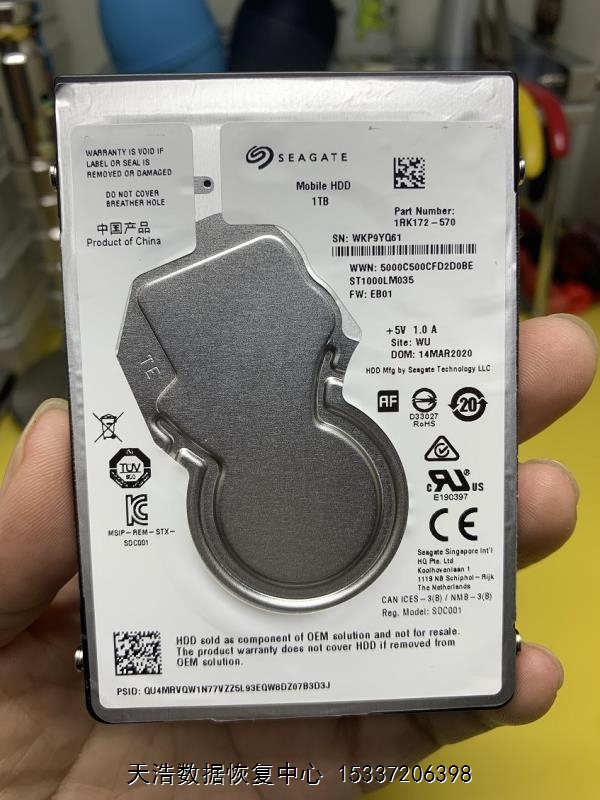 硬盘型号:ST1000LM035-1RK172 SN:WKP9YQ61 FW:EB01 电路板号:100835923