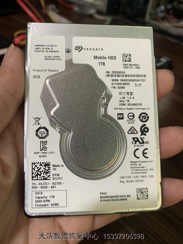 硬盘型号:ST1000LM035-1RK172 SN:ZDEB5DG9 FW:SDM2 电路板号:100809471