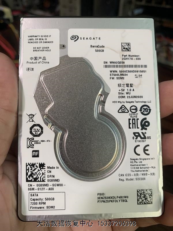 硬盘型号:ST500LM034-2GH17A SN:WN92QSS8 FW:SDM2 电路板号:100815565