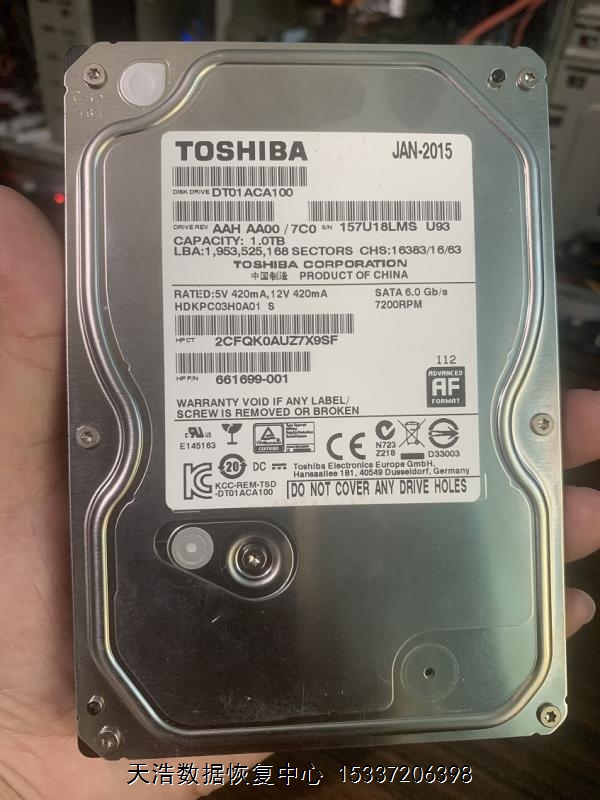 TOSHIBA DT01ACA100开盘恢复成功案例
