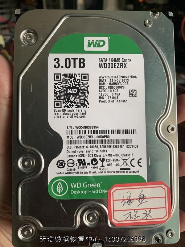 硬盘型号:WD30EZRX-00D8PB0 SN:WCC4N0388954 FW:15000AB 电路板号:771945-001