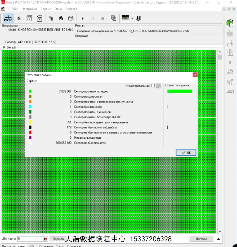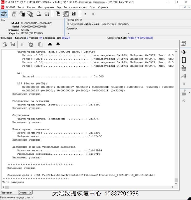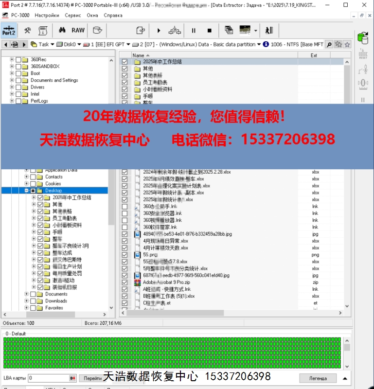 解决方案:收到硬盘后,我们使用专业的SSD恢复工具ACE PC-3000 Portable 3 ,短接通电就绪后,虚拟重建编译器,再用PC3000 DE虚拟镜像,基本完整成功恢复出客户硬盘内的重要数据!