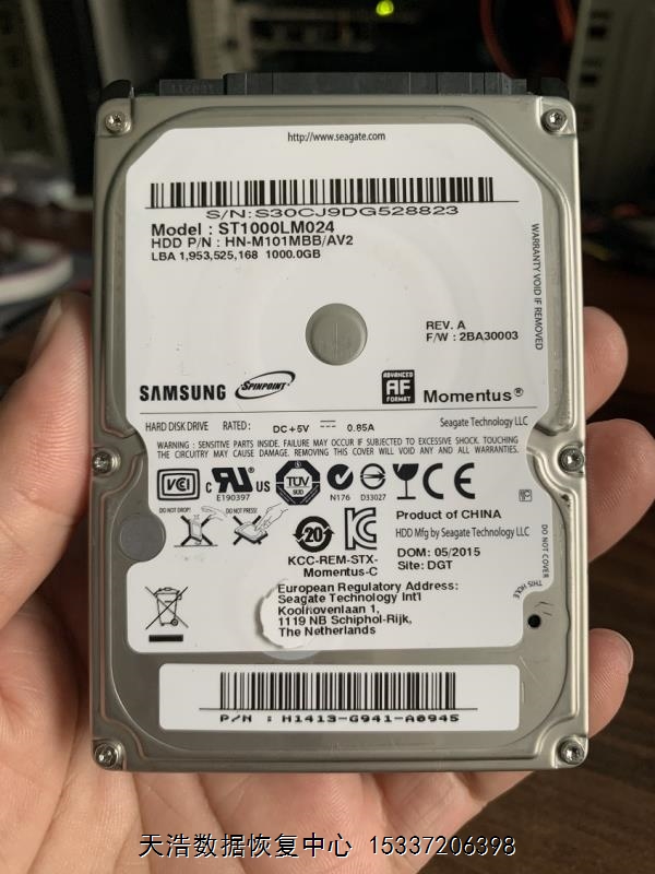 硬盘型号:ST1000LM024 HN-M101MBB SN:S30CJ9DG528823 FW:2BA30003