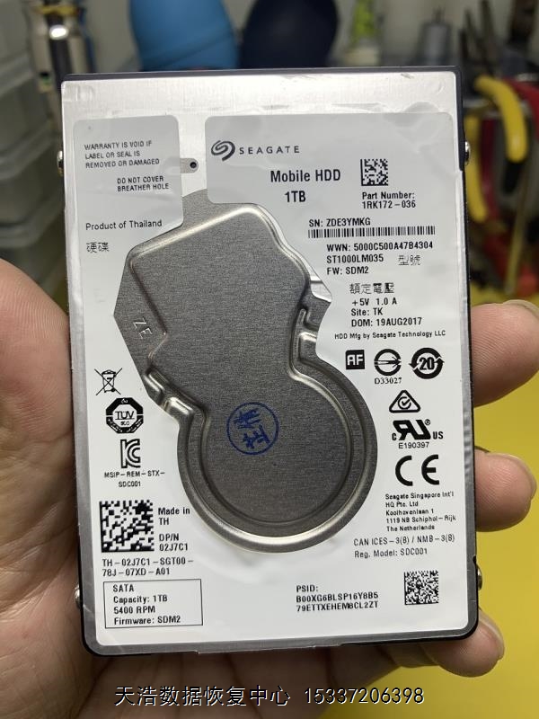 故障现象:希捷1t笔记本硬盘,通电敲盘!