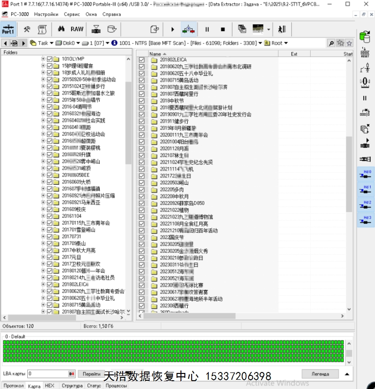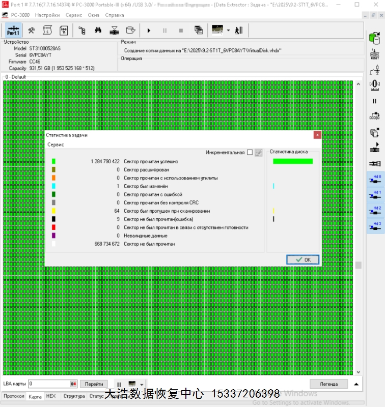 解决方案:收到硬盘后,在无尘环境拆开硬盘,发现1面有伤,清洗盘片,剪掉1头,ROM关掉1头,接到数据恢复工具ACE PC-3000 Portable 3上,通电硬盘正常认盘,备份关键固件,做好镜像前的处理工作,DE分头镜像023面数据,完了停转更换兼容的全好磁头,起转继续镜像,最后客户硬盘内的重要数据基本完整恢复!