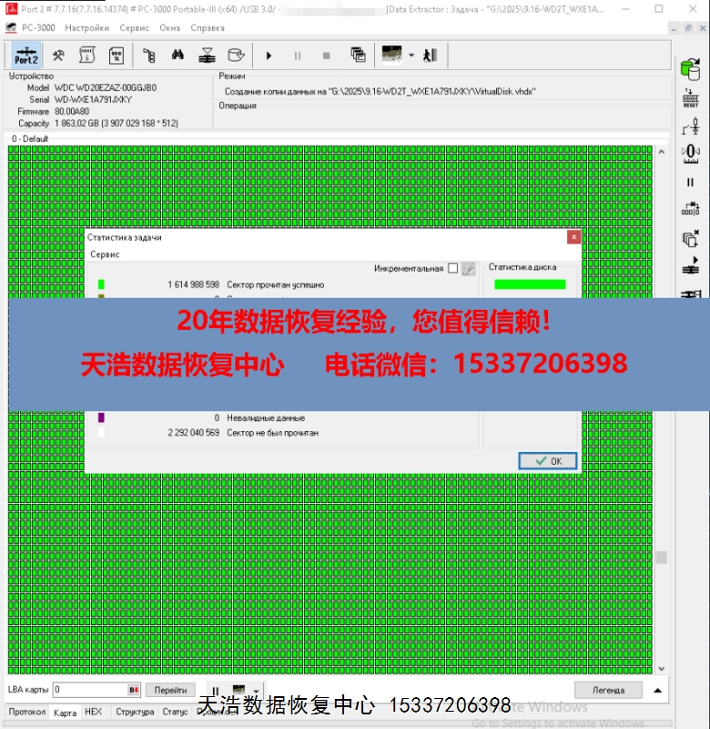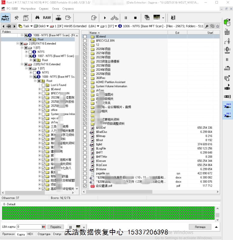解决方案:收到硬盘后,在无尘环境更换兼容的磁头,再接到专业数据恢复工具ACE PC-3000 Portable 3上,原板解锁后,再通电硬盘正常认盘,备份好关键固件,做数据恢复前的处理工作后,DE分头镜像,成功恢复硬盘内客户单位的几乎全部重要数据!