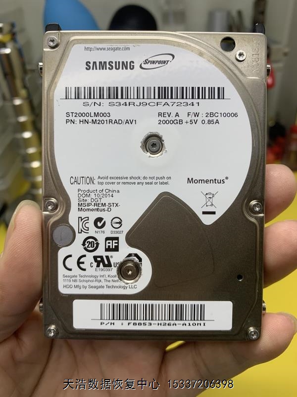 故障现象:希捷原装2000G移动硬盘,摔过通电敲盘!