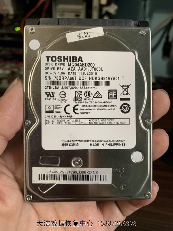故障现象:东芝2t笔记本硬盘,通电敲盘!