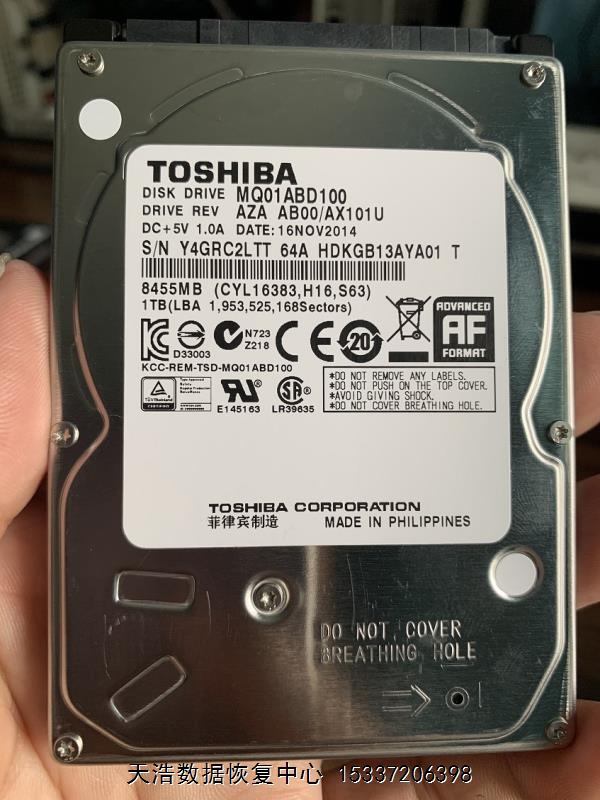 硬盘型号:TOSHIBA MQ01ABD100 SN:Y4GRC2LTT FW:AX101U 电路板号:G003138A