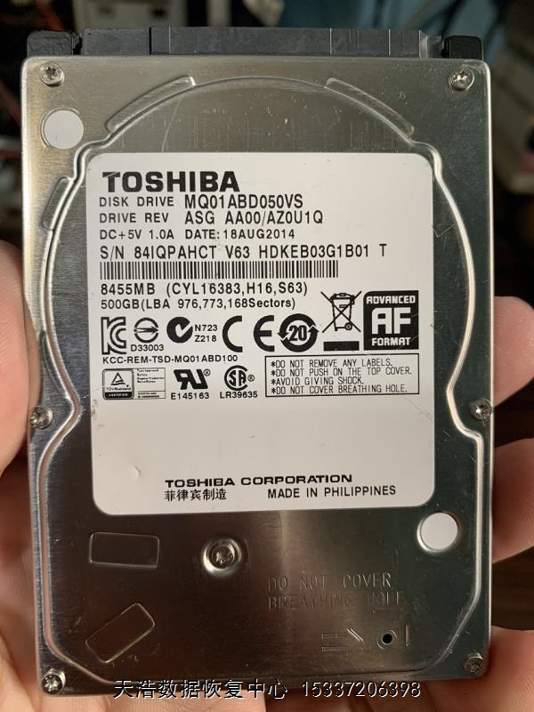硬盘型号:TOSHIBA MQ01ABD050VS SN:84IQPAHCT FW:AX0A1Q23 电路板号:G003138A