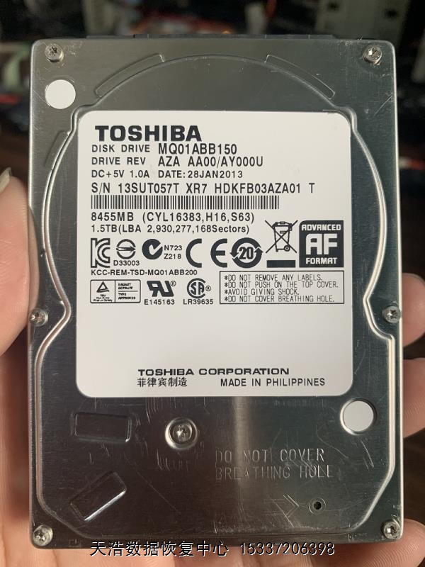 硬盘型号:TOSHIBA MQ01ABB150 SN:13SUT057T FW:AY000U 电路板号:G003235C