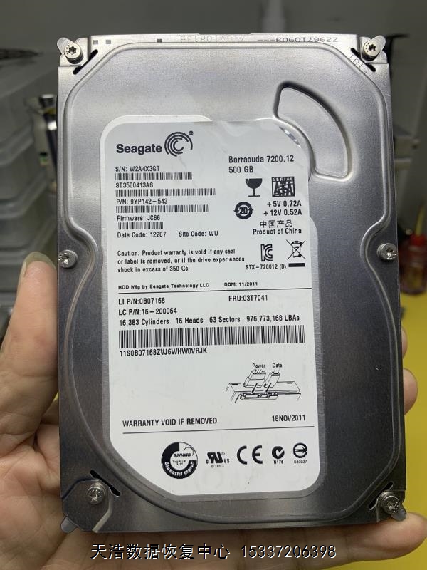 硬盘型号:ST3500413AS SN:W2A4X3GT FW:JC66 电路板号:100535704
