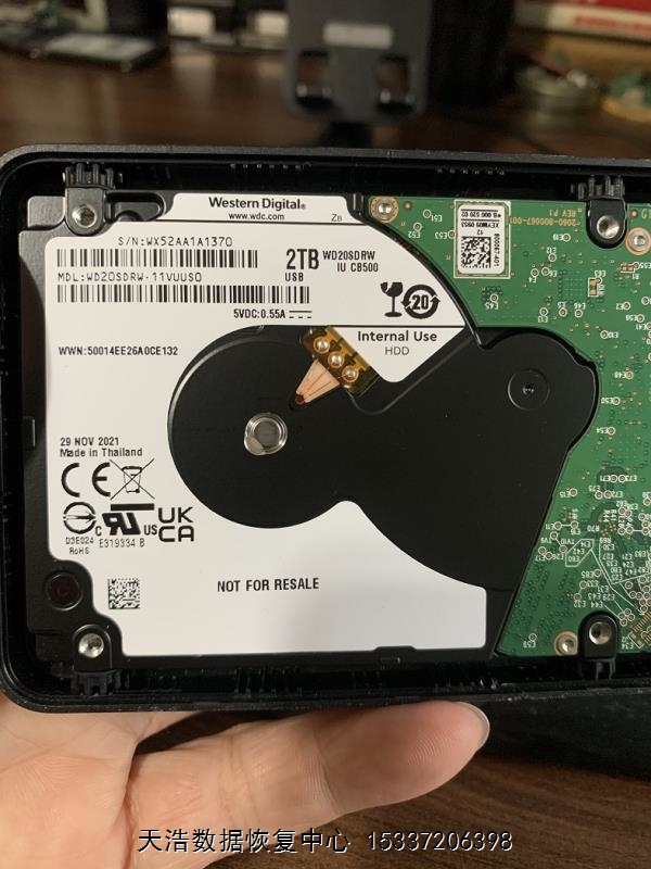 硬盘型号:WD20SDRW-11VUUS0 SN:WX52AA1A1370 FW:76008M 电路板号:800067-000