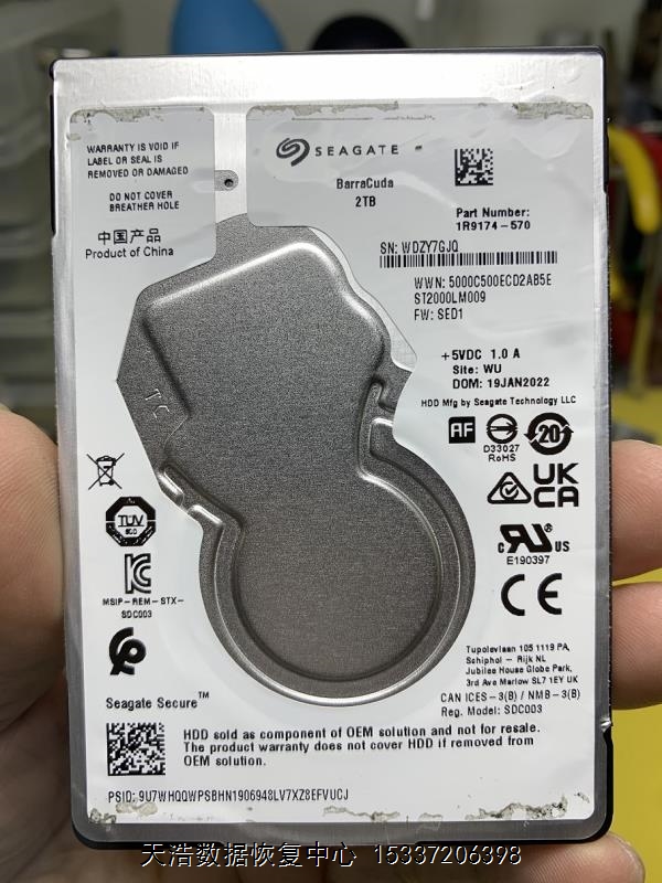 硬盘型号:ST2000LM009-1R9174 SN:WDZY7GJQ FW:SED1 电路板号:100835923