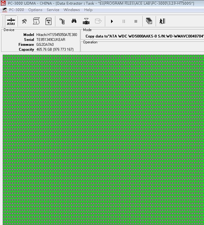 解决方案:从我们的备件库找到匹配的备件,在无尘柜里面更换磁头,接上PC3000 UDMA