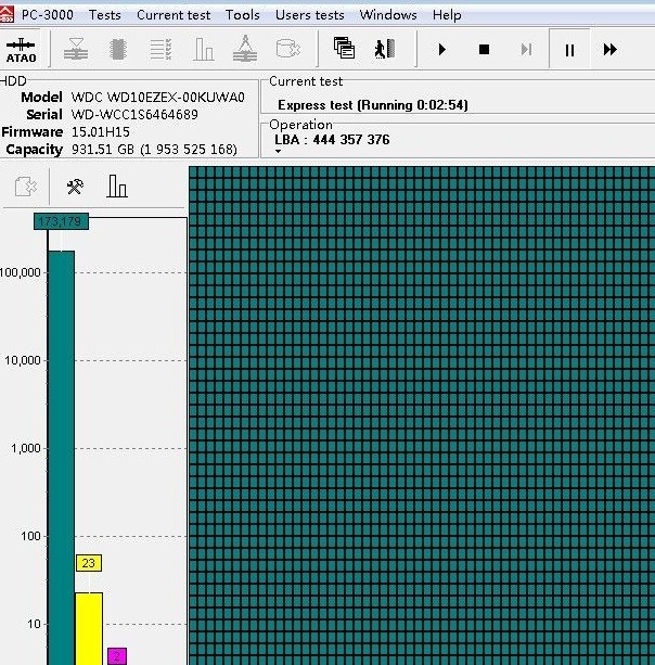 解决方案:这是西数新盘比较常见的一种通病,其实就固件问题,我们收到硬盘后,处理固件后,硬盘扫描、镜像速度恢复正常,几小时内数据全部镜像完成!