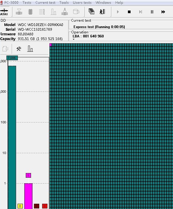 故障描述:武昌同行描述,硬盘通电正常认盘,但全盘坏道!