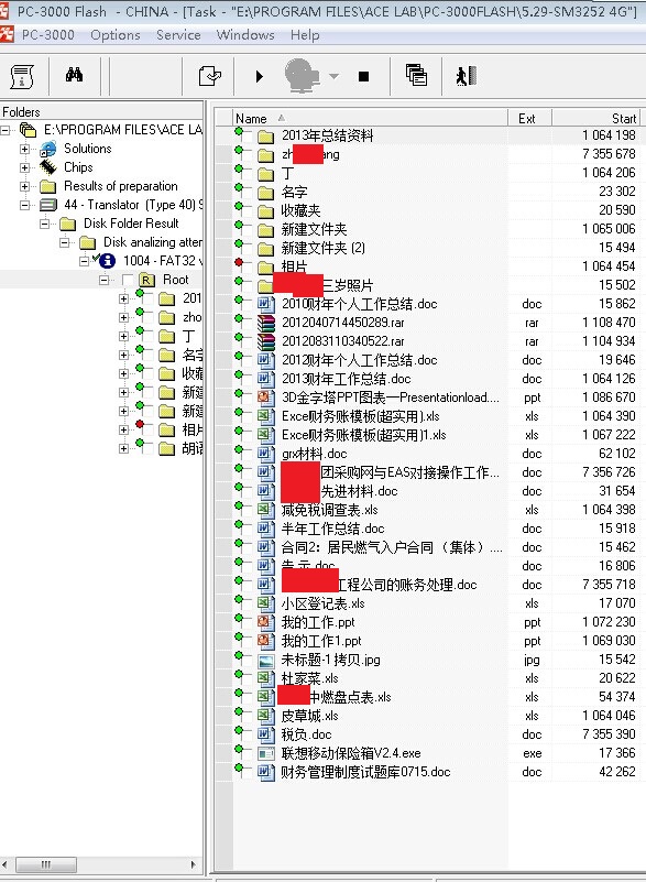 解决方案: 我们拆下FLASH芯片,接到专业的U盘数据恢复设备PC3000 FLASH上,读取芯片,完成后,通过手工分析,数据最后大部分成功恢复。