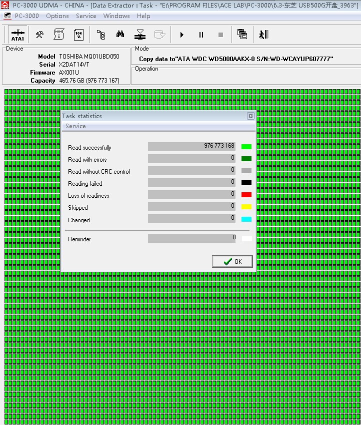东芝USB3.0 500G 硬盘开盘数据恢复成功案例!