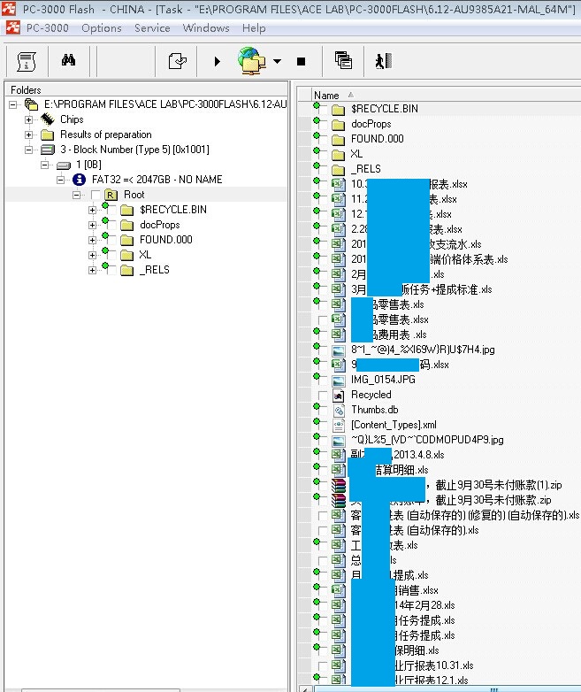 解决方案: 我们拆下FLASH芯片,接到专业的U盘数据恢复设备PC3000 FLASH上,读取芯片完成后,通过手工分析,数据全部完美成功恢复。
