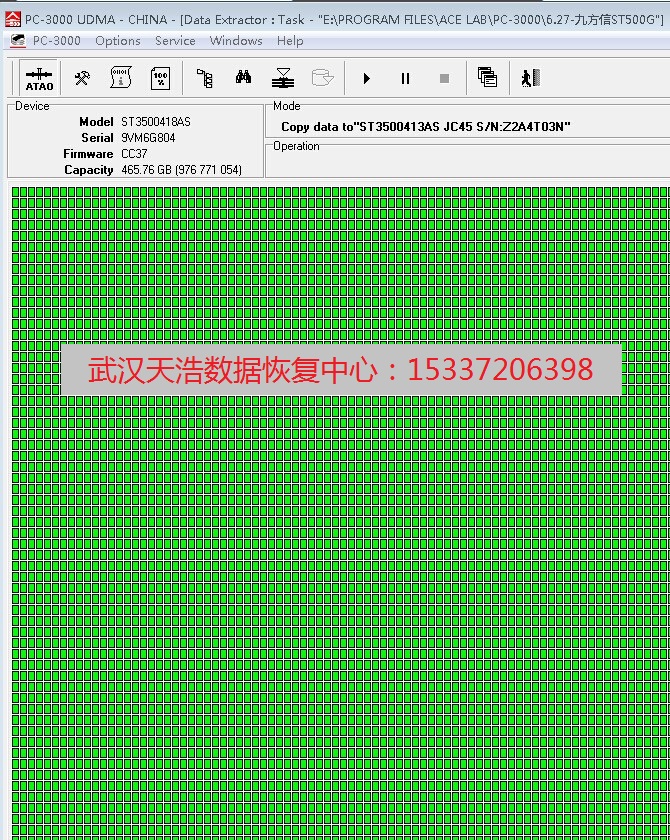 解决方案:我们收到硬盘后,接上PC3000 UDMA,检测修复者固件,再通电硬盘正常认盘,然后全盘物理镜像(由于客户是做汽车配件的,里面的有些数据是加密的,直接物理镜像, 数据恢复的完整性最好)。