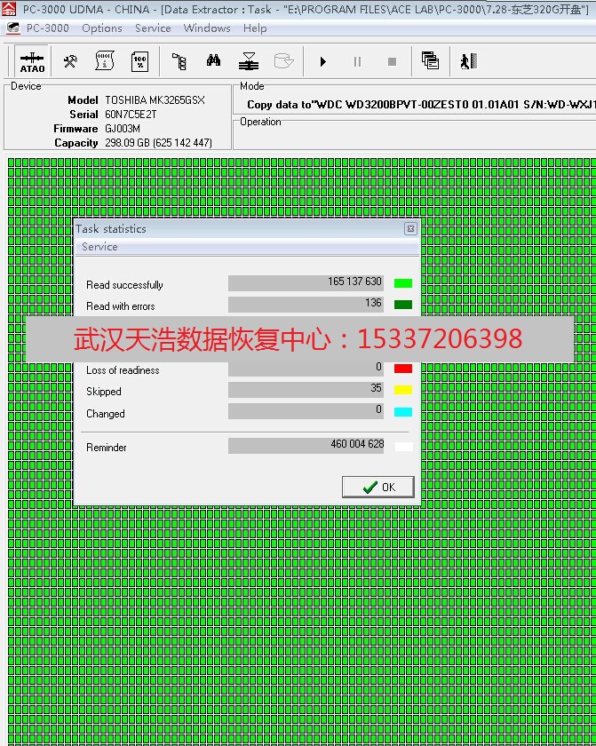 解决方案:从我们备件库找到匹配的备件盘,在无尘柜里面开盘更换磁头,再接上PC3000 UDMA,通电硬盘正常认盘,完美恢复出客户需要的几乎所有数据!