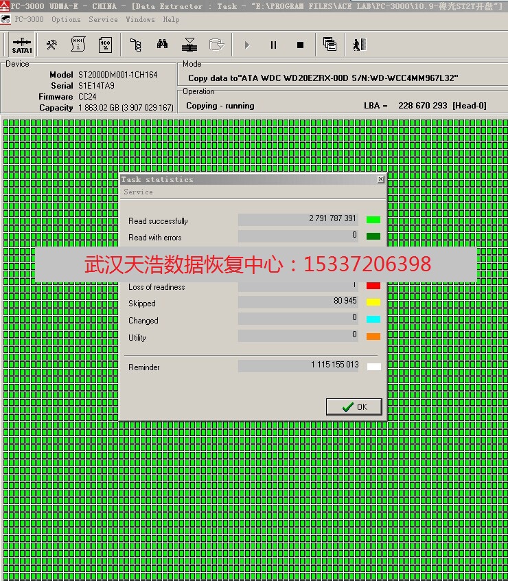 ST2000DM001-1CH164盘片划伤开盘恢复成功案例!