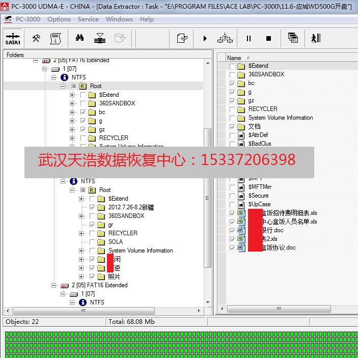 解决方案:从我们的备件库里面找到匹配的磁头,在无尘柜里面更换,然后接到我们专业的数据恢复工具PC3000 UDMA-E上,硬盘正常认盘,最后成功恢复客户几乎所有的资料!