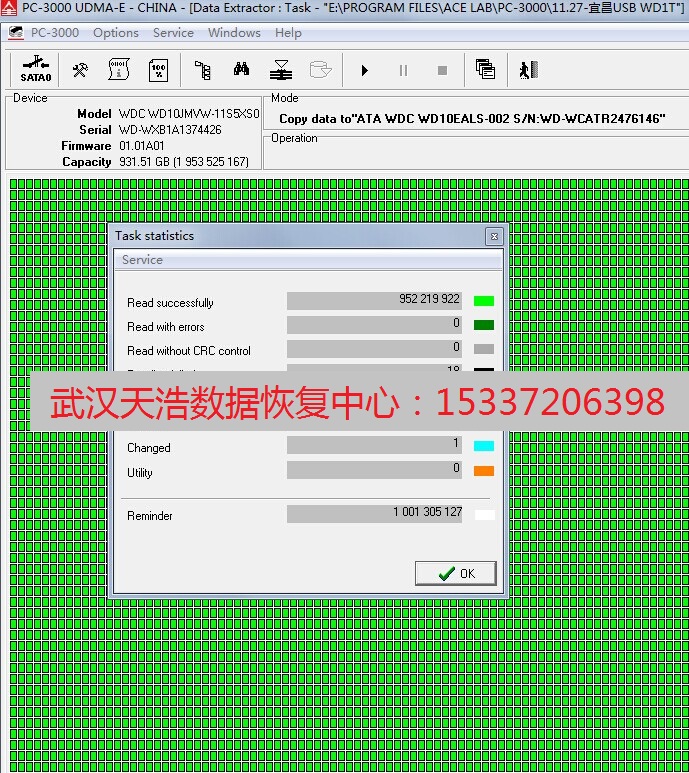 解决方案:从我们的备件库里面找到匹配的磁头,在无尘柜里面更换,然后接到我们专业的数据恢复工具PC3000 UDMA-E上,硬盘正常认盘,最后成功恢复客户几乎所有的资料!